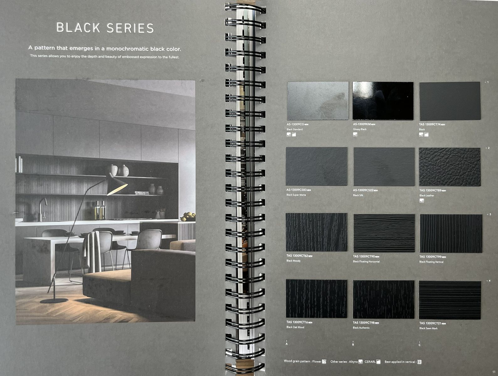 Thay vì chỉ là một mã màu đen đơn thuần, phiên bản 2026-2027 mang đến các cấu trúc bề mặt khác nhau (từ gỗ đến da) trên cùng tông đen, giúp các Kiến trúc sư xử lý độ tương phản sáng - tối một cách điêu luyện hơn.